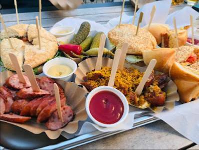 Andere interessante Daten: Sitzplätze im Freien, Zum Mitnehmen, Speisen vor Ort, Lieferdienst, Mittagessen, Abendessen, Allein speisen, Rollstuhlgerechter Parkplatz, Alkohol, Bier, Kleine Gerichte zum Teilen, Schnelle Mahlzeit, Mittagessen, Abendessen, Sitzgelegenheiten, Gemütlich, Zwanglos, Gruppen, Touristen, Kinderfreundlich.